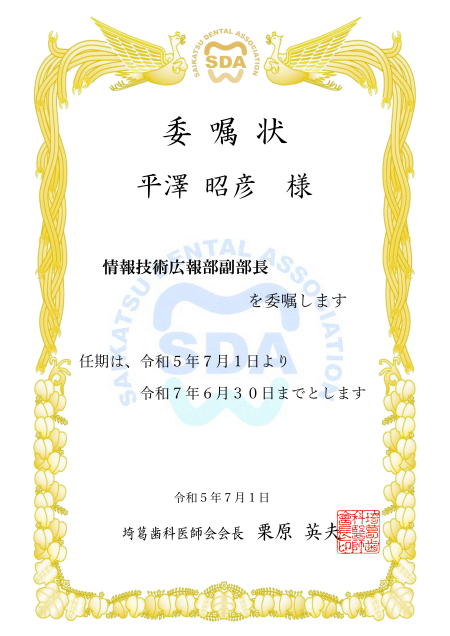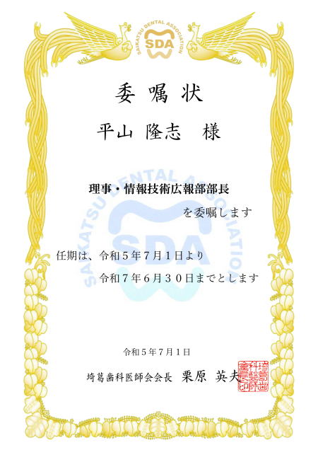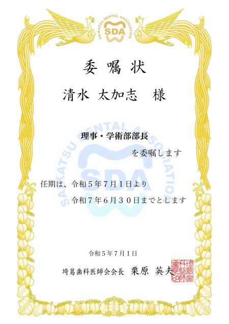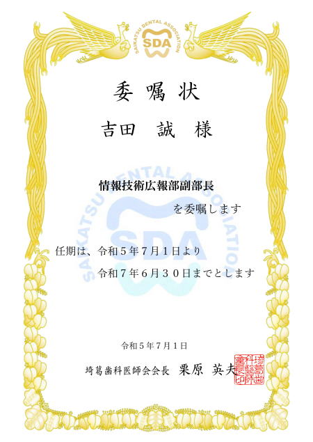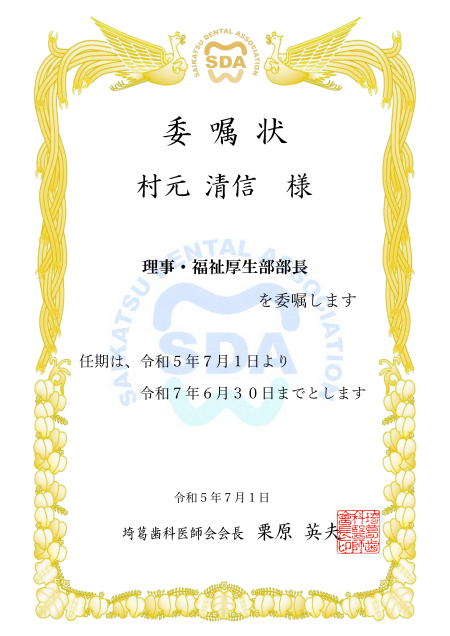| 総務部 医療保険部 学術部 福祉厚生部 医療管理部 学校歯科部 公衆衛生部 情報技術広報部 選挙管理委員会 支部長 副会長 専務理事 |